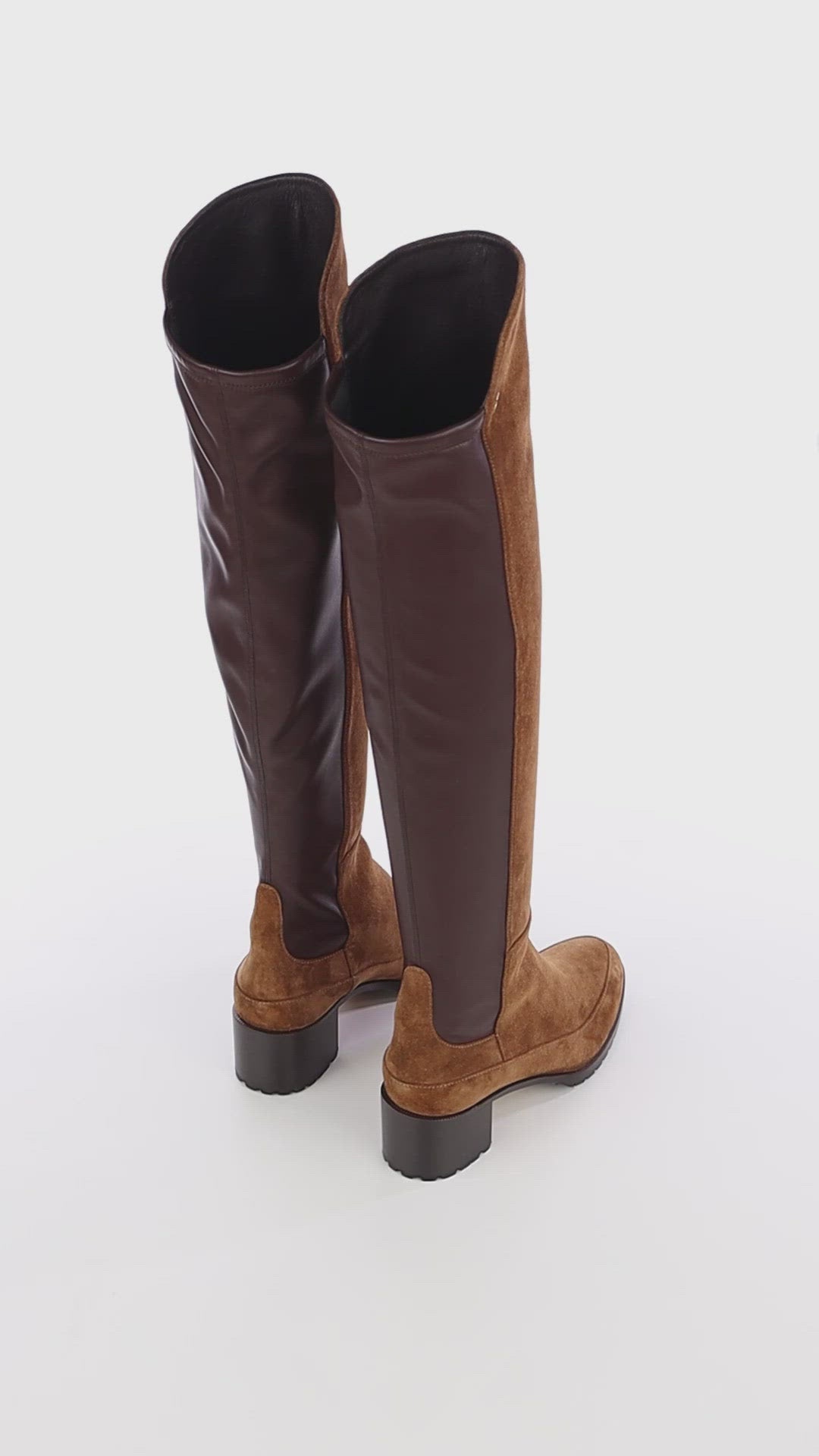 This casual over the knee boot is made from durable suede with a back panel of supple nappa leather which moulds elegantly to the leg and provides extra comfort to the wearer. Set on a sturdy block heel, the Emily has a thick non-slip rubber sole for an all-terrain apres ski aesthetic.
